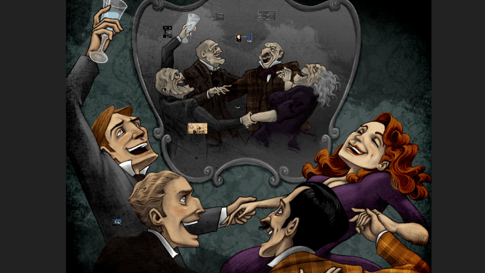 As Heidegger watches, they anxiously drink the water. As their youth becomes restored they resort to acting as fatuously as they had in their prime. Mr. Killigrew shouting happy drinkings songs and lustily viewing Ms. Wycherley. Mr. Medbourne sketching out far-fetched speculation schemes. Mr. Gascoigne talking meaningless political slogans and softly speaking secrets to himself. Ms. Wycherley admiring her image in a mirror and flirting with the men. The vase is accidentally smashed as the men fight over the widow, and its miraculous water is lost. The guests’ transformation only lasts for minutes, and then returns them to their original old age.